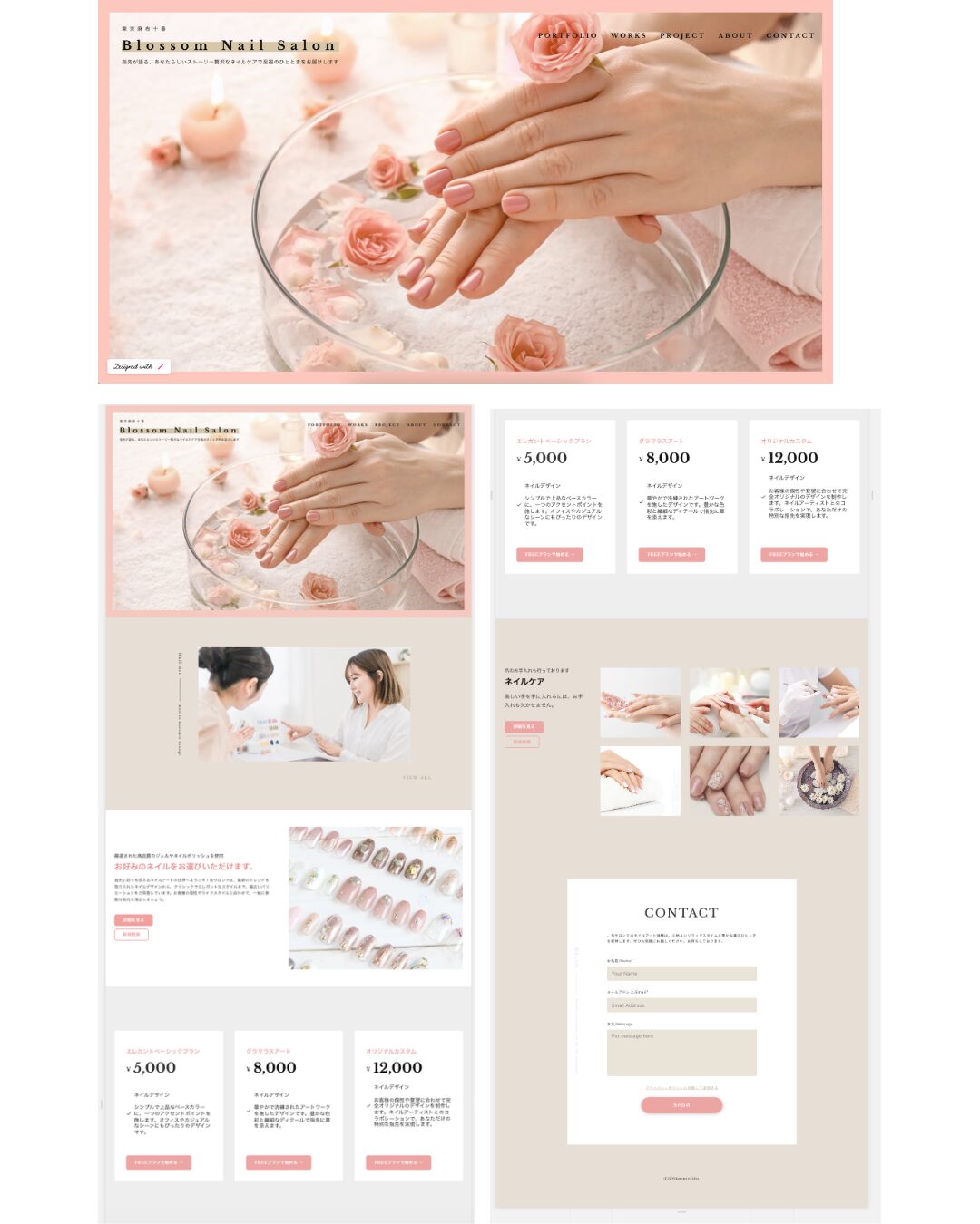 パステルピンクを基調としたネイルサロンのホームページを制作しました。