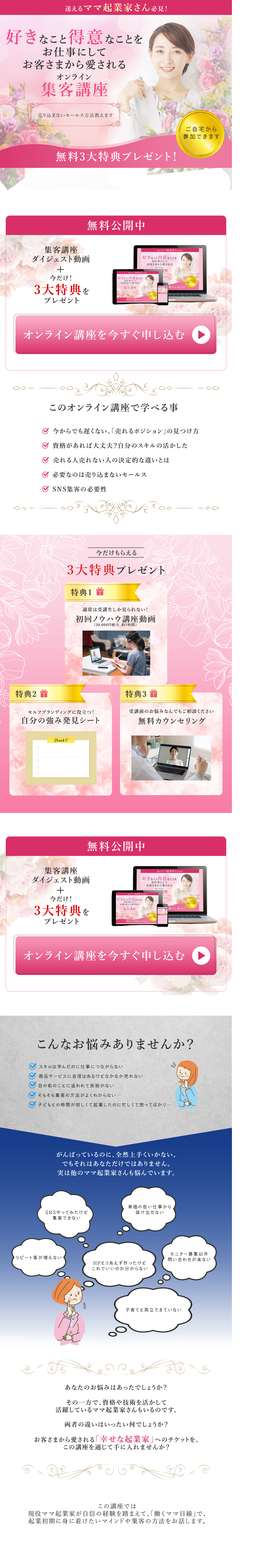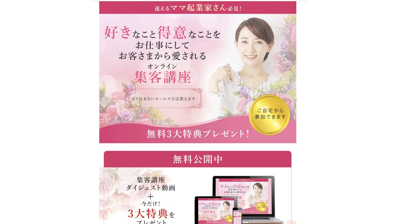 お客様に愛されるオンライン集客講座」のランディングページを制作しました。